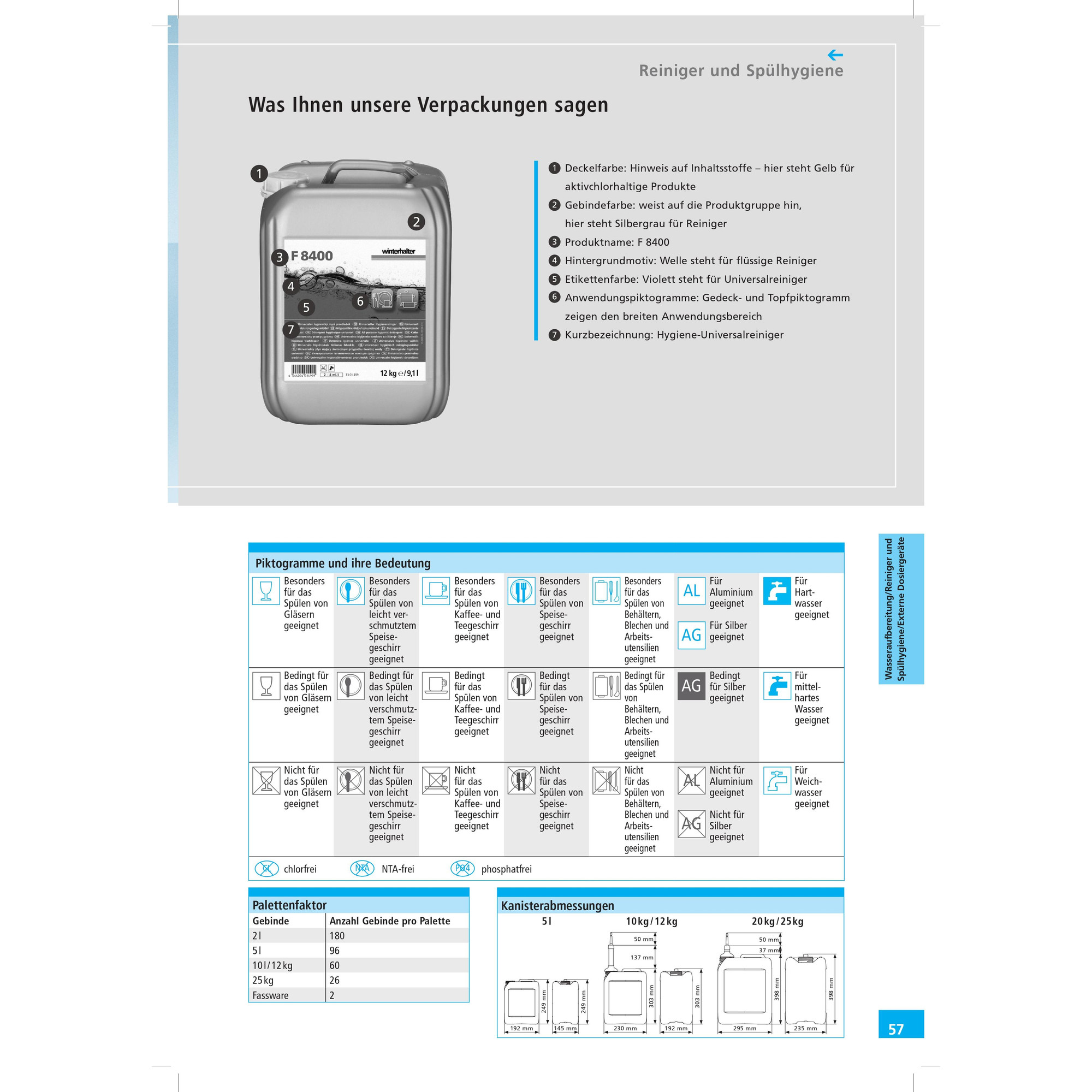 F 6200 ist ein flüssiger, hochalkalischern Reiniger mit intensiver Stärkelösekraft für gewerbliche Geschirrspülmaschinen. Dank seiner Bleichkomponente entfernt F 6200 besonders wirkungsvoll angetrocknete Speisereste, Kaffee- und Teerückstände sowie weitere Farbstoffe. Der Reiniger kann zum Spülen von Geschirr, Gläsern, Besteck sowie Gegenständen aus Kunststoff und Edelstahl eingesetzt werden. Darüber hinaus besitzt F 6200 eine sehr gute Fettlösekraft und verhindert zuverlässig den Aufbau von Stärkebelägen.